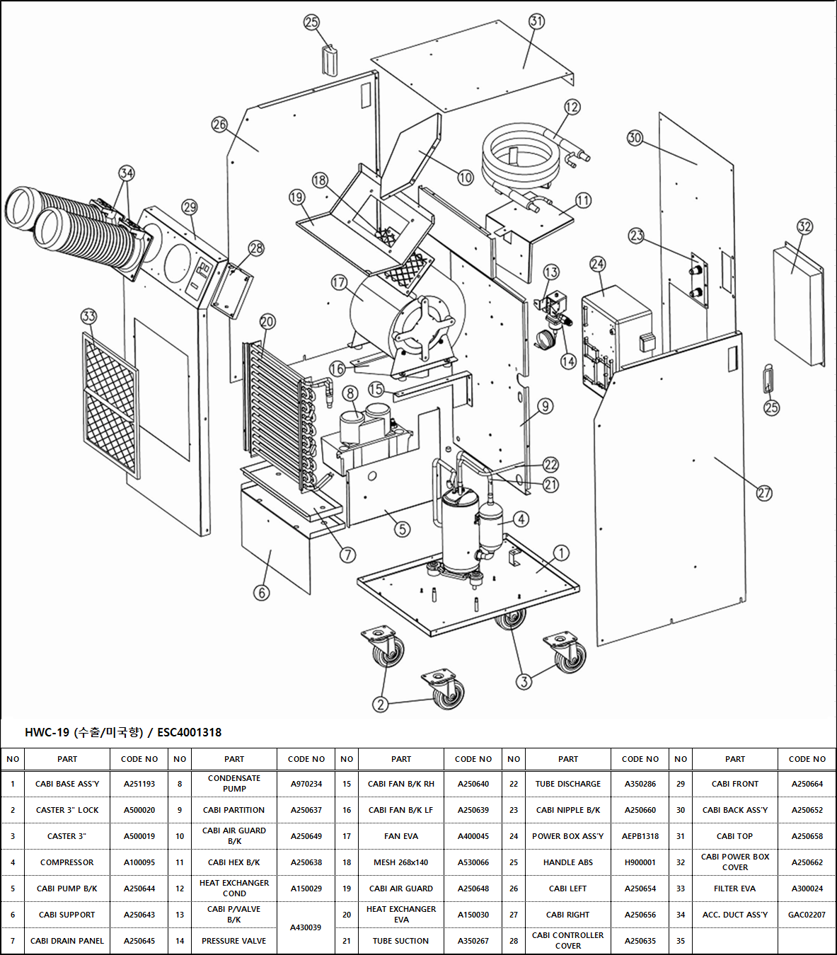 Airrex spot coolers operate in air temperatures from 65°F to 113°F. These air conditioners utilize eco-friendly R-454B refrigerant. Airrex spot cooler air conditioners may require a fresh air supply for proper operation. Includes removable, washable air filters for easy maintenance. Thermostatically protected compressor includes high and low-pressure warnings. Moves easily on swivel casters (2 locking). The HWC-19P has two 5” cold air discharge nozzles and needs two water hoses. ETL listed. Built-in Condensate Pump that plugs directly into the portable air conditioner. 1 Year Warranty. 3 Year LG compressor warranty. All of our portable air conditioners and heat pumps come standard with a dehumidification mode.